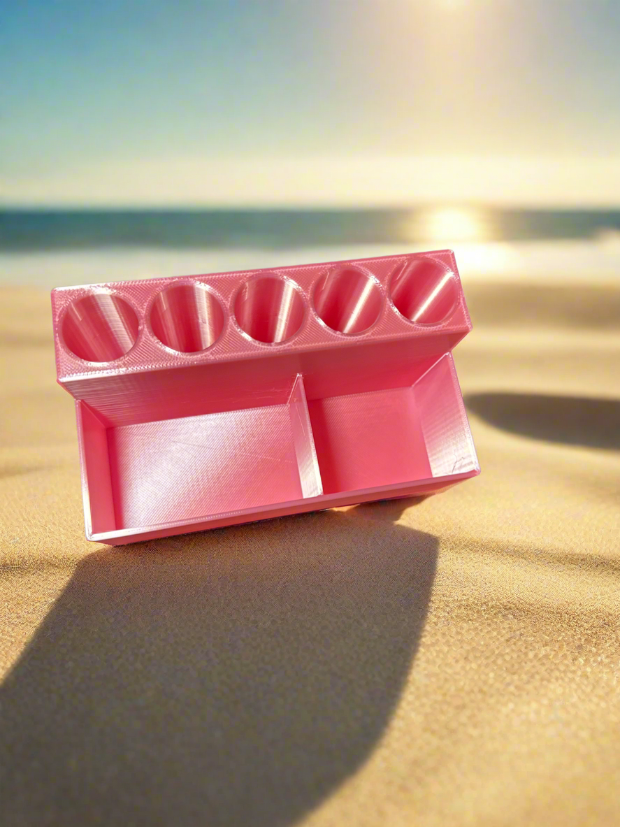 Keep your pen essentials organized and within easy reach with this 3D-printed organizer! Featuring five dedicated pen slots, it securely holds your pens upright. A spacious storage compartment provides ample room for needles and alcohol wipes, ensuring you have everything you need in one convenient place. Compact and durable, this organizer is the perfect solution for keeping your supplies tidy and accessible, whether at home or on the go.