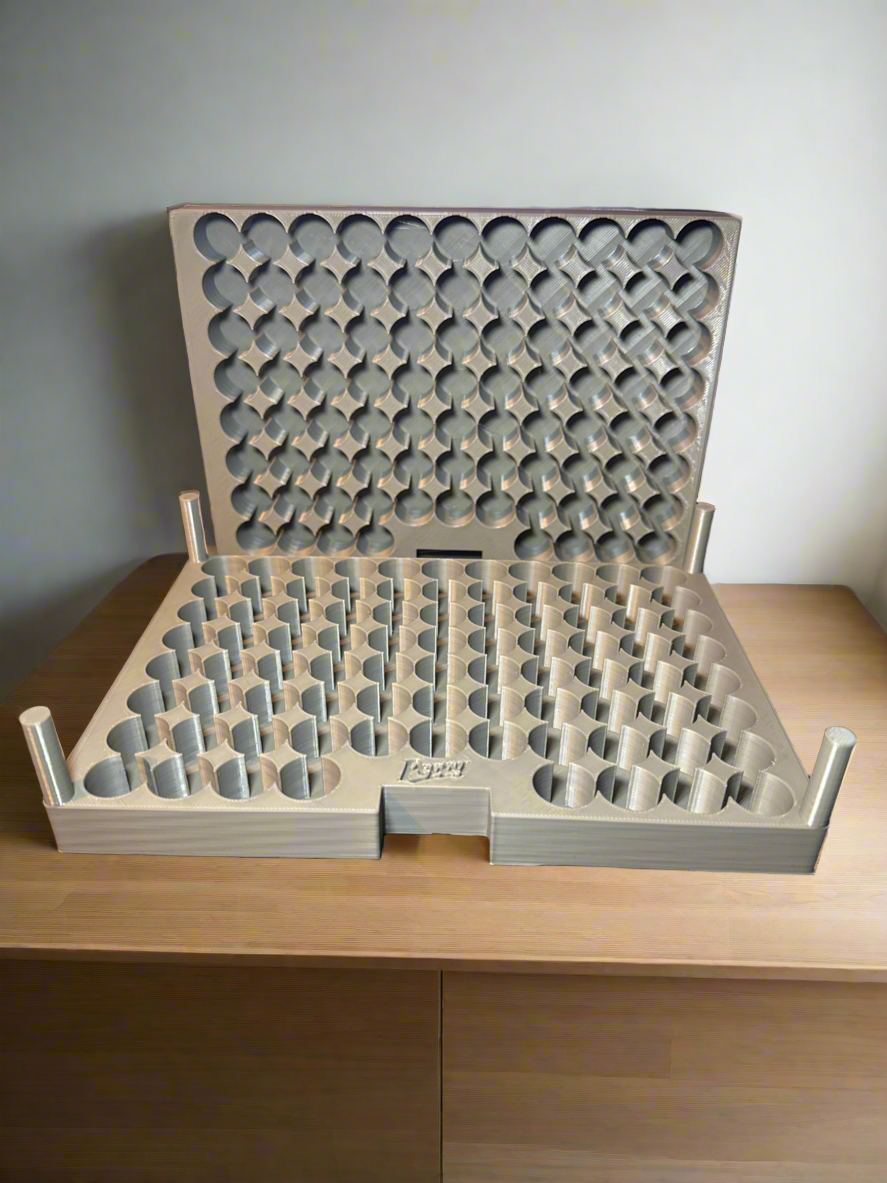 3D printed insert for 170 3ml vials, using a 85 slot top and 85 slot bottom design.