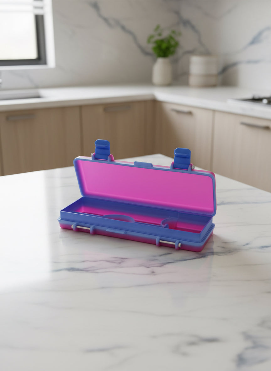 This innovative case is designed specifically to securely hold 1 pen, needles and alcohol wipes, combining functionality with a modern aesthetic. The exterior of the case features a sleek, streamlined design with a smooth finish that can be customized in various colors to suit personal preferences. Textured grips on the sides enhance the user experience by providing a secure hold, preventing slips when opening or closing the case. The case is designed with 2 living hinges, allowing it to open and close seamlessly along one side. This design choice enables the user to access the pens quickly and easily. It combines thoughtful design, durability, and personalization, making it both functional and visually appealing.